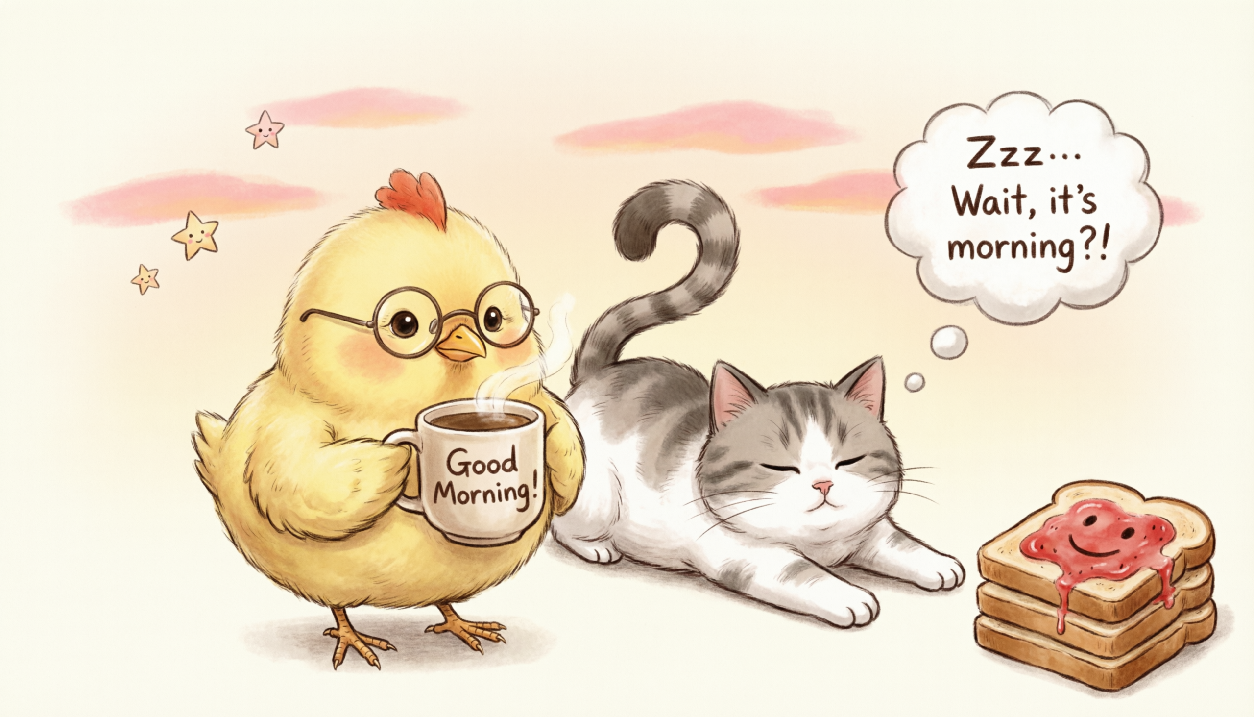 - Sending you cheerful dawn greetings wrapped in donuts, giggles, and mismatched socks.